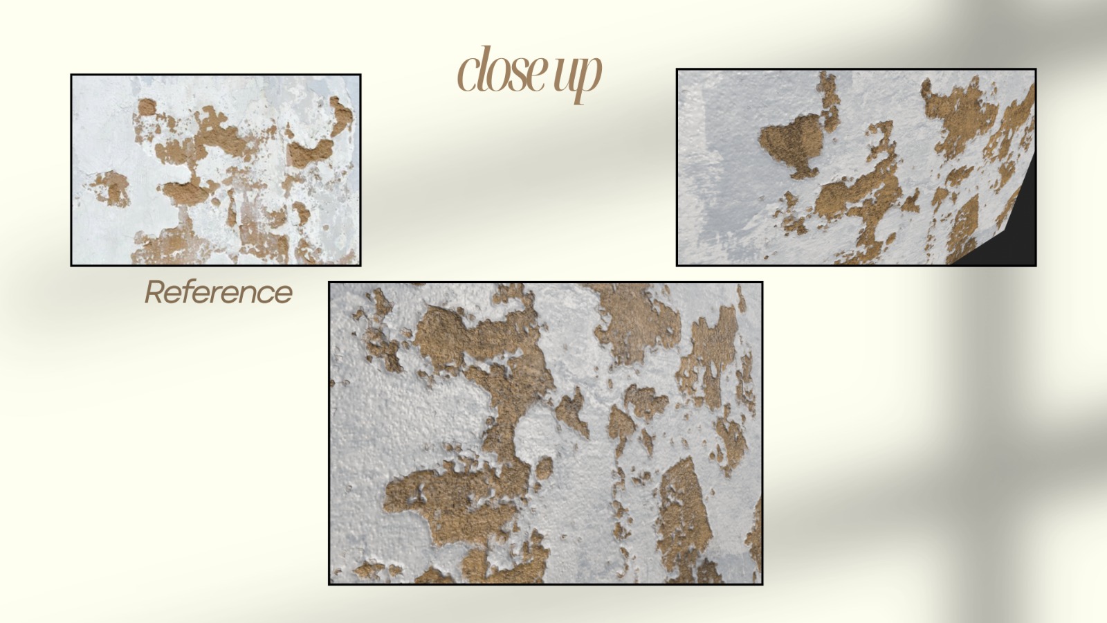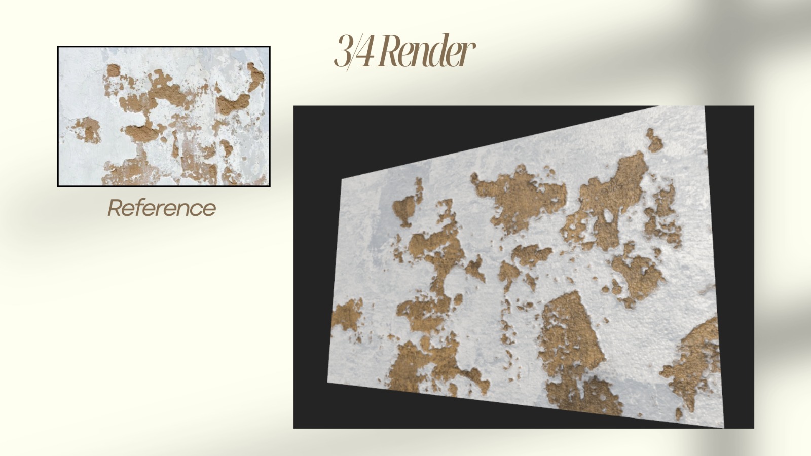 This project focused on recreating a reference wall using Substance Painter. Through multiple texture passes and layered detailing, I worked to match the surface qualities, depth, and realism of the original material. The project highlights my workflow in material creation and texture accuracy.